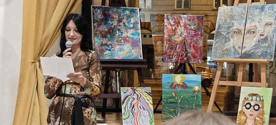 Po części artystycznej goście mogli podziwiać wszystkie prace z bliska, porozmawiać z twórcami i wymienić się wrażeniami. Nie zabrakło również ciepłej, kameralnej atmosfery – organizatorzy przygotowali poczęstunek: aromatyczne paszteciki, koreczki, mini kanapeczki, domowe ciasta i świeże owoce. Aromaty i smaki wzbogaciły wieczór, a śmiech i gwar rozbrzmiewały jeszcze długo po zakończeniu oficjalnej części.