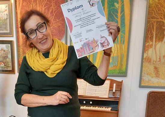 Alicja Fiedler uzyskała dyplom za zajęcie III miejsca w kategorii poezja w XV konkursie poetycko-literackim im. Anny Paciorek „Miłości kwiat w sercu rozkwita w każdym wieku”, organizowanym w ramach Dni Seniora Wrocław 2025 r.